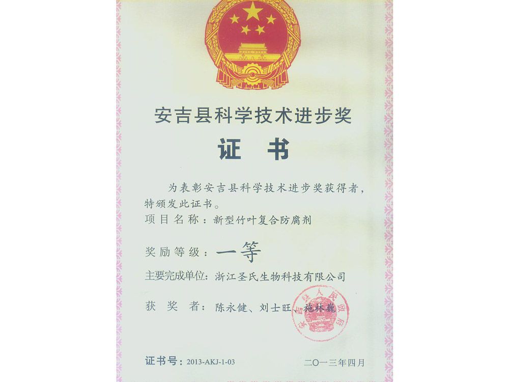 • 縣科技進步獎證書